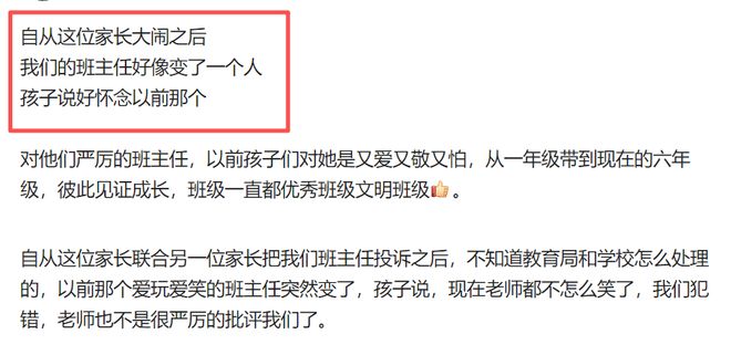 社会对教育的态度逐渐改善,家长也更加关注孩子的学习。但其中也包含了大量的抱怨和谴责。许多家长认为,关心学生,首先要从老师开始。看来,先教育老师改掉孩子的坏习惯,就可以消除孩子的问题了。然而,这100多条报道中,大部分都是虚假的。这伤害了教师的感情,也不利于正常教育活动的开展,但是还有什么好处呢?如果只拍了两张“红照”就向班主任举报,家长就要承担后果。老师不再认真督课。什么能让一个20岁的老师彻底失望?事实上,你所需要的只是两张脸红的照片。其中一位家长表示,这起事件实际上就发生在他们的旁边。虽然她孩子的老师很年轻,但她对教育了解很多。据说他平时善良又坚强。孩子们爱她、怕她、尊重她。从一年级到六年级,我们见证了彼此的成长,他们的班级一直都是优秀而文明的。但他是一位非常严格、负责、年轻有为的老师。事实上,我的父母已经告诉我了。有空间举报吗?这位父亲问他的孩子们为什么。有一天,她在六年级11家长群发布了两张儿子手臂的照片。她说儿子身上有两处红点。他并没有认为这件事是小事,直接去找导演,直接提出了指控。肯定是校长打了自己的儿子。我希望我能当场与我的老师对峙。老师的语气一开始比较平静,但这可能导致家长的态度变得更加严肃。他声称老师应该对他的儿子做同样的事情。但他们却忽略了还有更深的一层y 这背后。难道是因为孩子和其他孩子一起玩耍,身上出现了红色的痕迹?这是正常的吗?或者说孩子真的很调皮。例如,他们可能在课堂上私下讲话、不听讲、或者扰乱课堂秩序。然后老师扭动他的手臂。这是一个问题吗?至少在笔者那个时代,我并不认为这是一种惩罚或体罚,而是教师使用的正常教学方法。老师是成年人了,既不开朗也不严厉,什么都知道。但家长的举报直接摧毁了老师。据说教授的性格突然就变了。他只是说他的心已经凉了,他无法用任何东西来掩饰。事实上,我的父母取笑了我。此后,课堂管理变得很松懈,但家长并没有说是老师的错。毕竟,我选择了我的佛教老师。接下来是不是可以继续继承n是优越阶级还是文明阶级?很多家长都害怕。当学生们回到家后,他们告诉家长,他们那个风趣、爱笑的班主任突然变了。现在的老师一般都不怎么笑。这一次,父母不能眼睁睁地看着自己承担后果。事实上,有很多家长在举报事件时,总会收到老师的各种投诉。创伤及其反应。我只能说我的儿子是个男孩,但导演曾经是个男孩,现在仍然是个没有被父母养大的男孩。一位二十多岁的老师,思想勇敢,行动勇敢。这是非常罕见的。如果你能带好班级,你就已经很优秀了。为什么要给你或者正教授加上毫无根据的理由呢?这次真的是家长的问题了。所以家庭和学校之间真正的冲突并不是家长不信任学校,而是有些家长故意找麻烦。显然他只是想挑战一下增强部分青年教师的权威。但现在挑战结束了,他们高兴吗?你满意吗?未必。本文所有照片均来自网络。如有违规,请联系我们删除。
