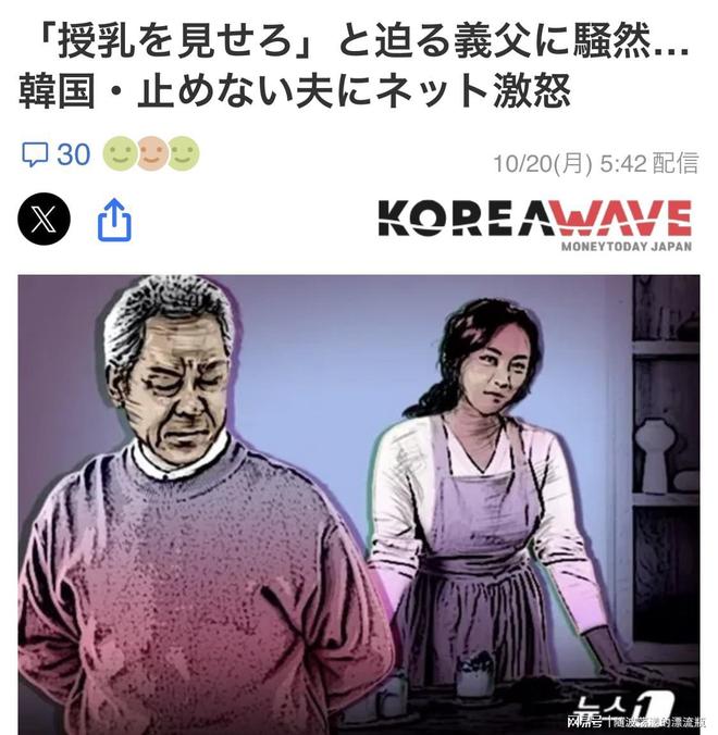10月8日,韩国某匿名网络社区发表了一篇题为《想监控母乳喂养过程的岳父》的文章。该海报因抱怨她的公公“我想看她母乳喂养”和她的丈夫而激烈地为她辩护说“我不能让我的父亲被当作变态对待”,招致了韩国公众的批评。据该刊物报道,这位韩国岳父表示,“我想亲眼看到我的孙女母乳喂养。”爷爷,我有权利见他。”她还多次强调:“如果我是一个母亲,我真的希望我的孩子能母乳喂养。”当发帖者(妻子)坚决拒绝时,她的丈夫生气了,质问:“你为什么把我父亲当成色狼?”然后又把她当成一个“偏执病人”。更令人窒息的是,当我的母亲停止母乳喂养,改吃配方奶时,我的公公 骂我说:“什么?如果你不喝母乳,你是妈妈吗?你没有资格做母亲,你不是母亲!”发帖者表示困惑,并表示:“我很担心、很焦虑,想知道我的公公是否在照顾我。把我当作一个女人,而不是一个家庭成员。他甚至干涉我的衣服、化妆和首饰。最可怕的是,我的岳母当时就在我身边,却保持沉默。”针对这件事,网上做了一个调查,93% 韩国网友认为这样的事情以前从未发生过。”网友建议“她应该明确表达不满并与她保持距离”、“如果她丈夫坚持认为这不公平,她应该考虑离婚”。